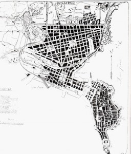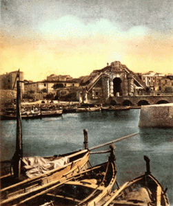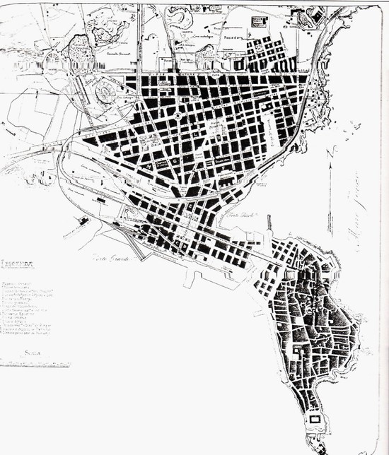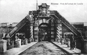 Da www.ortigiaisland-re.it : Siracusa con il suo centro storico sorge sul mar Jonio nella costa sud orientale della Sicilia, l’ isola di Ortigia ( isola delle quaglie) è separata dalla terra ferma da un canale d’acqua chiamato “Darsena” che collega il Porto Grande al Porto Marmoreo. Un tempo i canali d’acqua erano tre, due dei quali nel 1880 furono prosciugati e coperti con il materiale ricavato delle demolizioni dei Bastioni e degli ex fortilizi che difendevano l’isola.